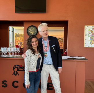 De volgende ochtend begaven wij ons na een heerlijk ontbijt naar het wijnhuis van de getalenteerde (vooral witte) wijnmaker Marco Porello, aan de voet van de wijngaarden rond Chiesa di San Michele, waar wij door hem en zijn kranige moeder allerhartelijkst verwelkomt werden. Na een korte rondleiding met uitleg over de productie methode, belanden wij in het proeflokaal waar wij zijn gehele arsenaal wijnen mochten proeven. Aansluitend begaven wij ons naar de Osteria dell’Enoteca idem in Canale van sterrenchef Davide Palluda, waar wij genoten van een drie gangen lunch met onder andere Marco Porello's wijnen, waarbij ook Maestro JC Viens van het Consiglio Reggitore van de Ordine dei Cavalieri del Tartufo e dei Vini di Alba aanschoof.