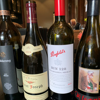 Tijdens de lunchvergadering in het restaurant van onze club werden er na de Champagne van Laurent Perrier La Cuvée Brut ter voorbereiding van het komende Syrah thema een Aalderlng Stellenbosch Syrah 2018 en een Saint-Joseph L’Olivaie 2004 van Coursodon bij het voorgerecht geschonken, gevolgd bij het hoofdgerecht en de kazen door een BIN 128 Penfolds 2019 en een