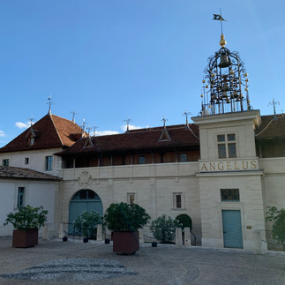 Dag 1: Goed voorbereid ging onze Bordeauxreis deze nazomer naar de rechter oever van de Garonne te weten naar Saint-Emilion, na een soepele landing ging onze reis eerst naar het historische centrum, waar wij ons inkwartierden in het bijzonder charmante hotel “Logis de la Cadène” met het gelijknamige sterren restaurant. Vanuit onze kamer hadden wij een panoramisch uitzicht over het stadje en de “Tour du Roi”. Na een korte pauze besloten wij met onze reisgenoten te voet naar Chateau Angélus te wandelen, waar wij allerhartelijkst werden ontvangen door de eigenaar zelve Jean-Bernard Grenié met het klokkenspel van het Nederlandse volkslied “Wilhelmus van Nassauwe” door carillon vervolgd door een private rondleiding door zijn chateau en uitleg over het domein, opgevolgd door een proeverij van twee van zijn bijzondere wijnen uit 2015; “Carillon d’ Angelus” Saint-Emilion Grand Cru van de wat verder op van het chateau gelegen wijnvelden en een opschaling qua intensiteit naar “Chateau Angelus” Premier Grand Cru Classé A. Beide wijnen waren voortreffelijk uit een groot jaar met nog een behoorlijk bewaar potentieel. Op de vraag waarom Chateau Angelus tweemaal in de film van James Bond voorkwam, antwoorde onze gastheer zeer attent dat 007 nou eenmaal van mooie spullen houdt.