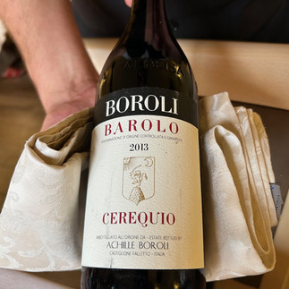 Dag 6: de ochtend van onze laatste dag was ingeruimd voor Alba, waarbij wij een bezoek brachten aan het prestigieuze huis Ceretto, prachtig gelegen op een heuvel uitzicht biedend Castello Grinzane Cavour. Wij werden er kundig rondgeleid door Mattia Pagliasso, waarna er een unieke proeverij volgde van o.a. diverse Barbaresco's en Barolo's volgde.